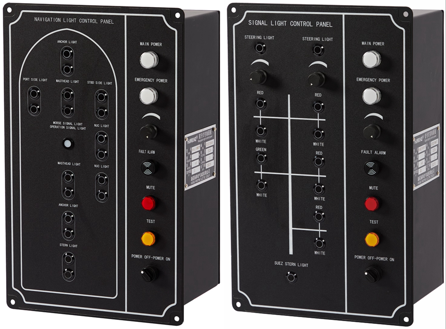 海星集團研發(fā)的航行燈控制器(HX-NLC)與信號燈控制器(HX-SLC),是專為船舶復雜航行環(huán)境設計的智能控制設備。它們承擔著船舶夜間航行、惡劣天氣預警及信號通信的關(guān)鍵任務,通過精準控制航行燈與信號燈的啟閉邏輯,為船舶提供全天候可視化安全保障,是船舶航行安全的“神經(jīng)中樞”??刂破髟O有調(diào)光、試燈、消音等按鈕,具有主備電源自動轉(zhuǎn)換、主電失電報警、航行燈信號燈故障報警等功能,深受廣大用戶的喜愛和信賴