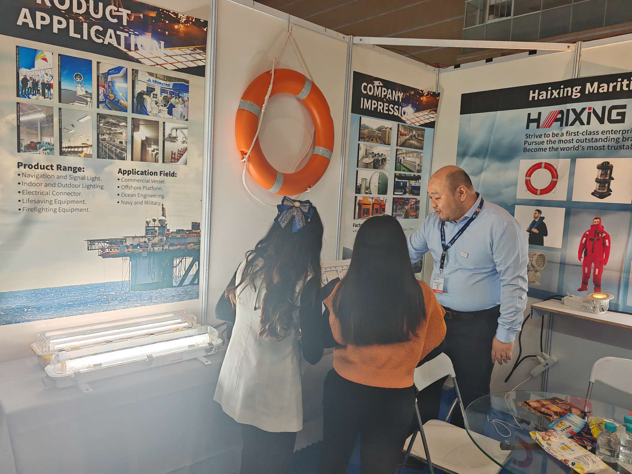 展會(huì)現(xiàn)場(chǎng),我們展出了新型LED單層雙光源航行燈、小型LED遠(yuǎn)程控制搜索燈、防爆燈具、救生設(shè)備等產(chǎn)品,并為客戶介紹全新的船舶智能照明方案,直觀詮釋“可靠、創(chuàng)新”的品牌理念,吸引眾多行業(yè)人士駐足交流,彰顯海星集團(tuán)在海事電氣領(lǐng)域的深厚積淀與市場(chǎng)影響力。